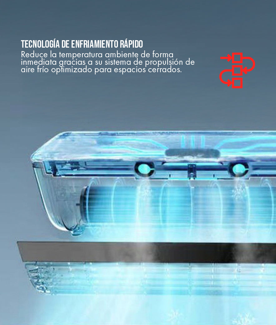Utiliza un sistema de enfriamiento por evaporación de alta eficiencia. Al pasar el aire caliente a través de sus filtros internos húmedos, la energía térmica se absorbe, resultando en una corriente de aire notablemente más fría que la del ambiente.