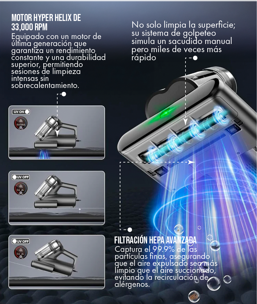 No permitas que los ácaros y el polvo invisible afecten tu salud. Recupera la pureza de tu santuario de descanso con tecnología de punta.