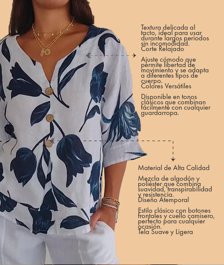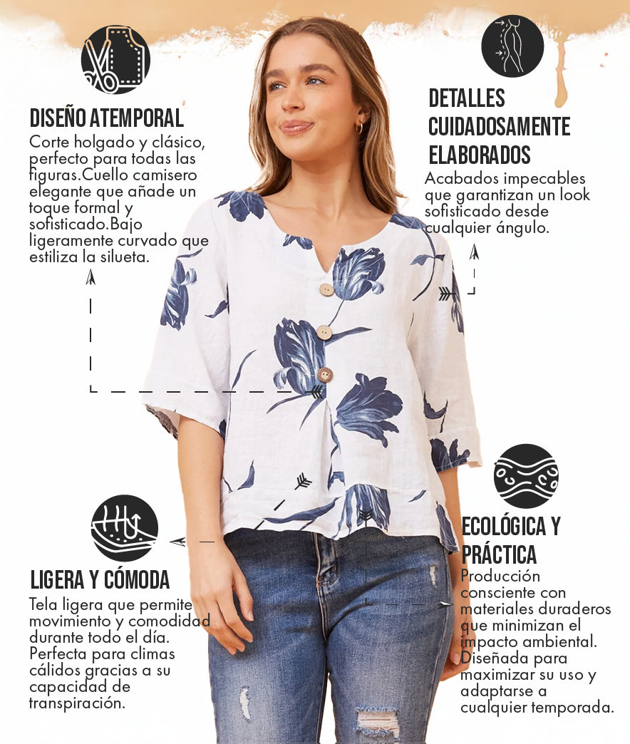 ¿Quién dice que la ropa cómoda no puede ser sofisticada? Esta camisa te permite tener un look impecable para un brunch o un café, sin sacrificar la sensación de estar en casa. Cada vez que te vistas con la Camisa Marina Bloom, sabrás que estás haciendo una elección consciente. No es solo moda, es una declaración de tus valores de sostenibilidad y calidad.