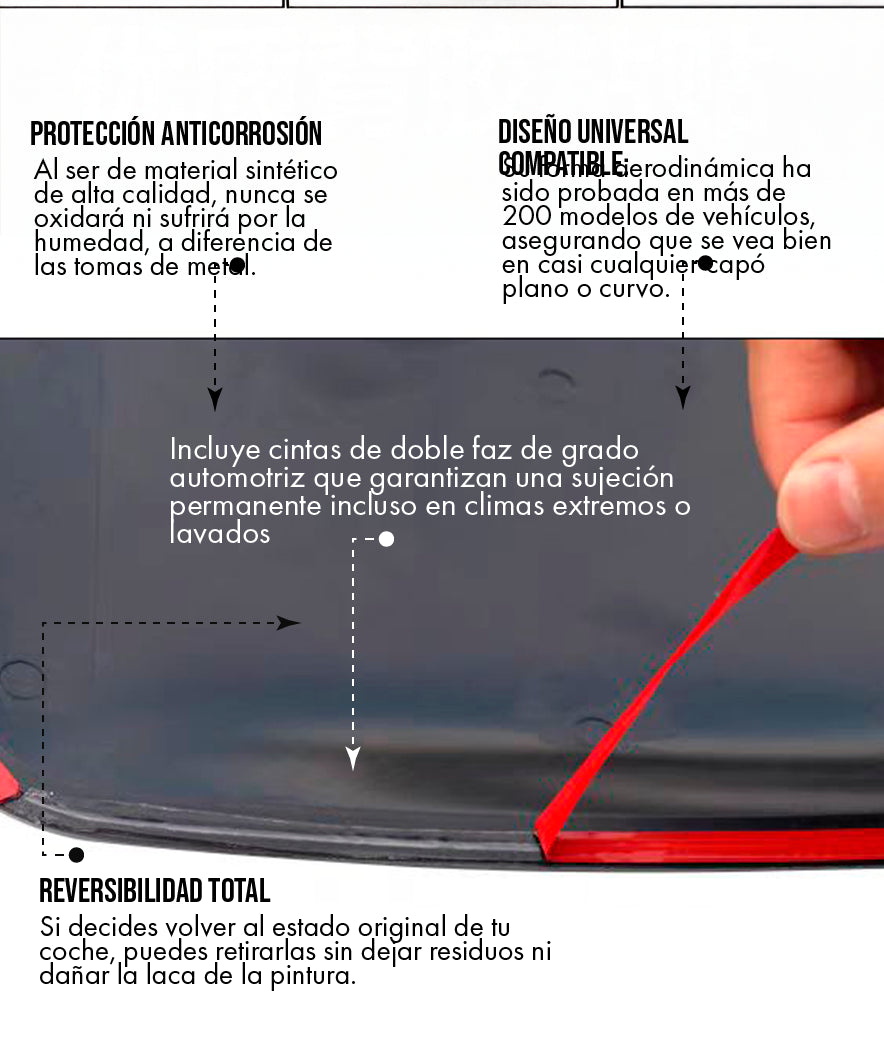 Absolutamente no. El kit utiliza adhesivo automotriz de doble contacto de grado industrial. Este tipo de adhesivo está diseñado específicamente para soportar fuerzas de arrastre aerodinámico y vibraciones constantes. Si se instala correctamente sobre una superficie limpia, puede soportar velocidades superiores a los 140 km/h sin riesgo.