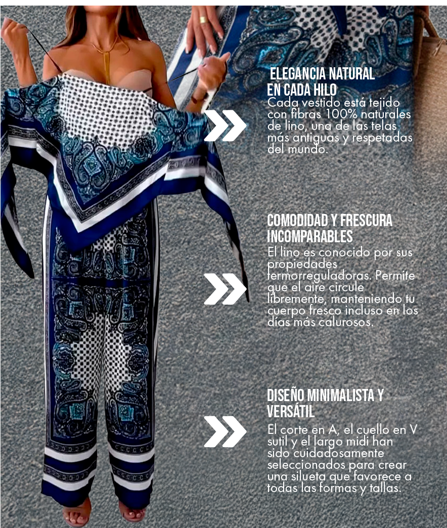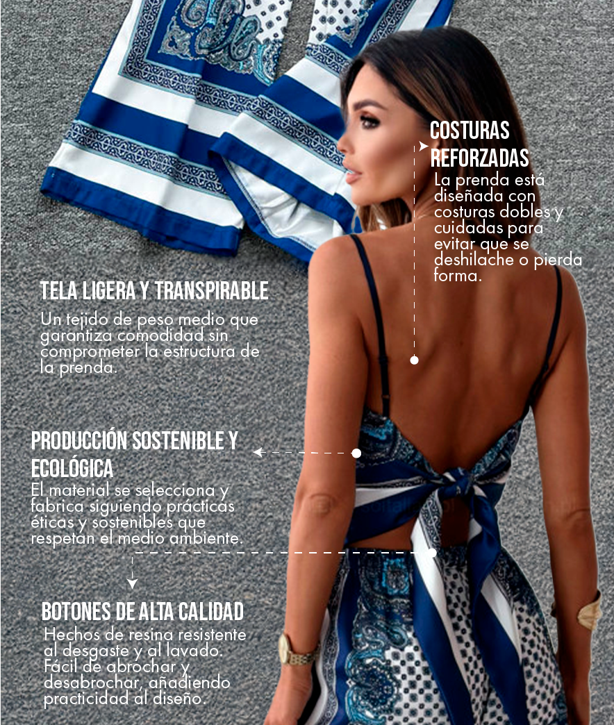 La elegancia no tiene por qué ser complicada. Nuestro conjunto te ofrece un look sofisticado y coordinado sin la necesidad de pensar o combinar prendas. Es el secreto para lucir siempre lista y chic.