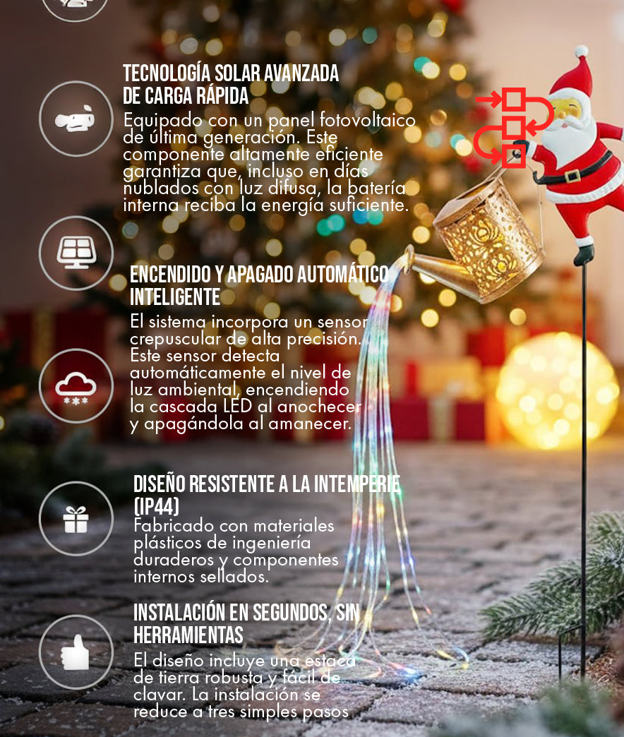 La Navidad es un momento para inspirar asombro y alegría. Si tus luces son las mismas de cada año, estás perdiendo la oportunidad de capturar el espíritu festivo. La cascada de luces de Santa es un imán de miradas que transforma tu casa en el punto focal de la cuadra. ¡ES HORA DE SER EL VECINO ENVIDIADO!
