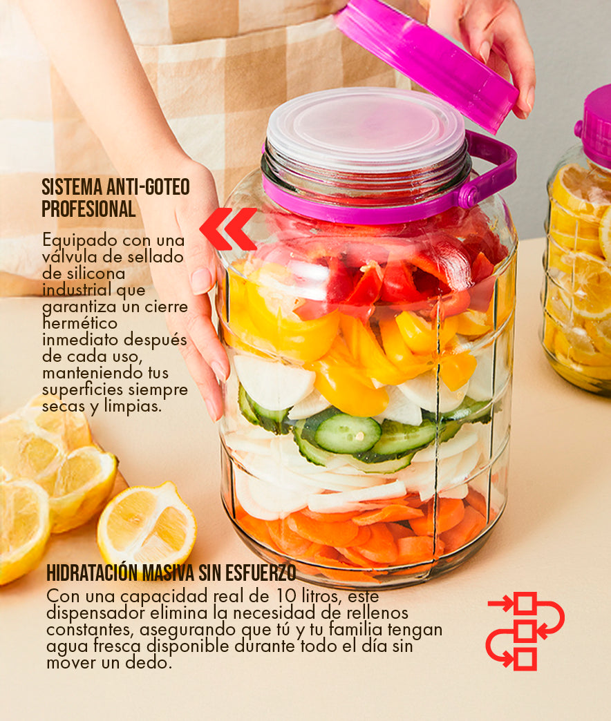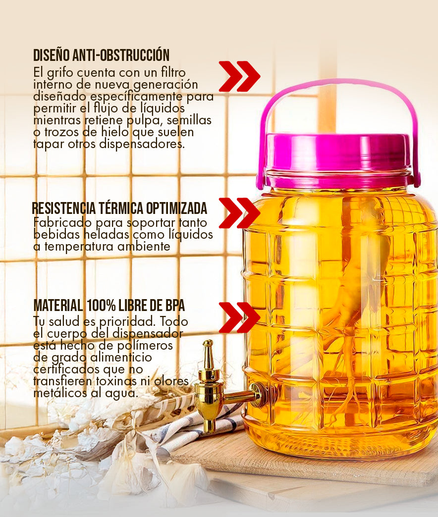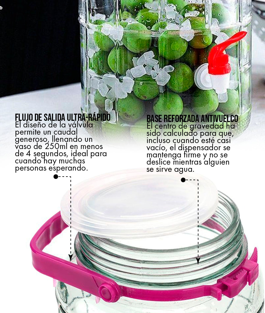 Recupera tu tiempo y tu paz mental. Disfruta de la comodidad de tener una fuente de hidratación inagotable en casa. Siente la libertad de relajarte mientras tus invitados se sirven solos con un sistema que simplemente funciona.