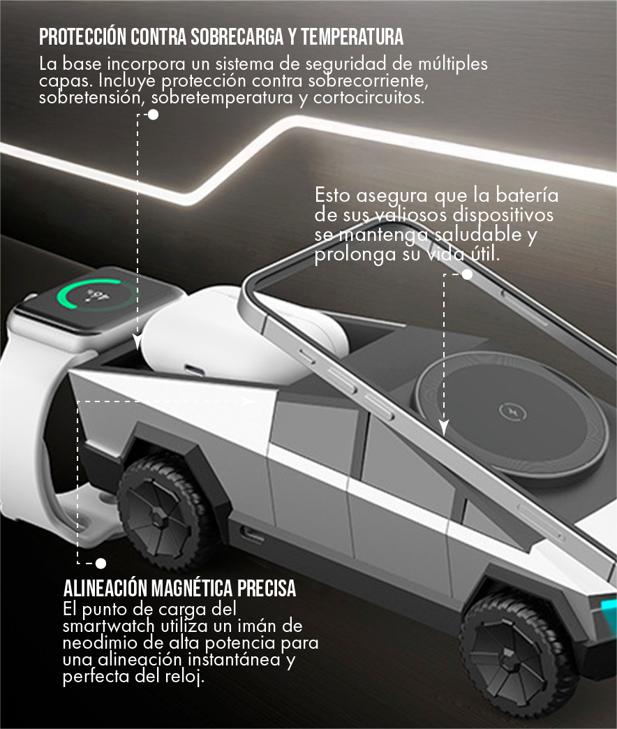 La CyberDock 3 en 1 está diseñada para ser altamente compatible con los estándares magnéticos de la mayoría de los relojes inteligentes principales. Específicamente, es totalmente compatible con la serie Apple Watch, Samsung Galaxy Watch y la mayoría de los modelos Huawei Watch y otros que utilizan el estándar de carga inductiva Qi. Si su reloj tiene carga inalámbrica, lo más probable es que sea compatible.