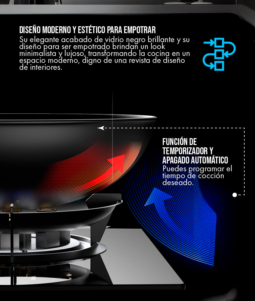 Cero riesgo de fugas de gas y indicador de calor residual. |