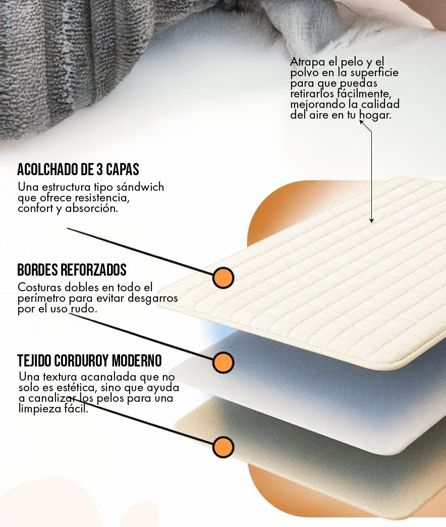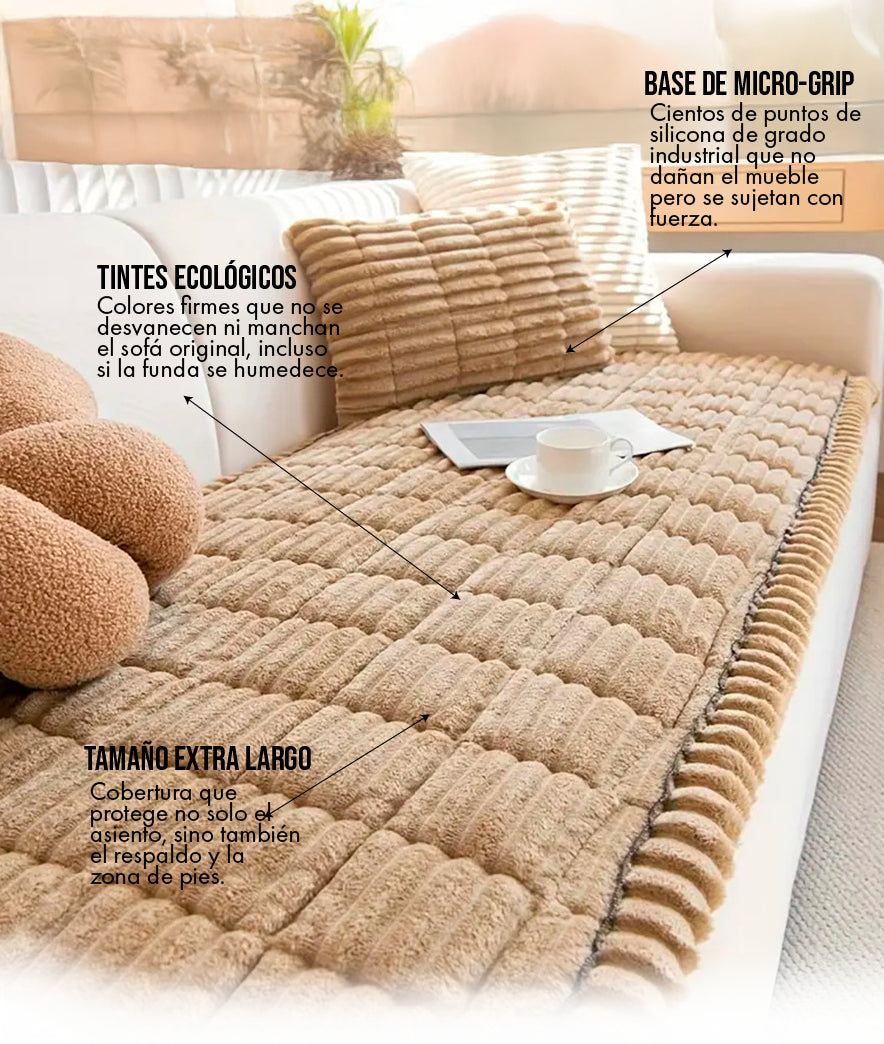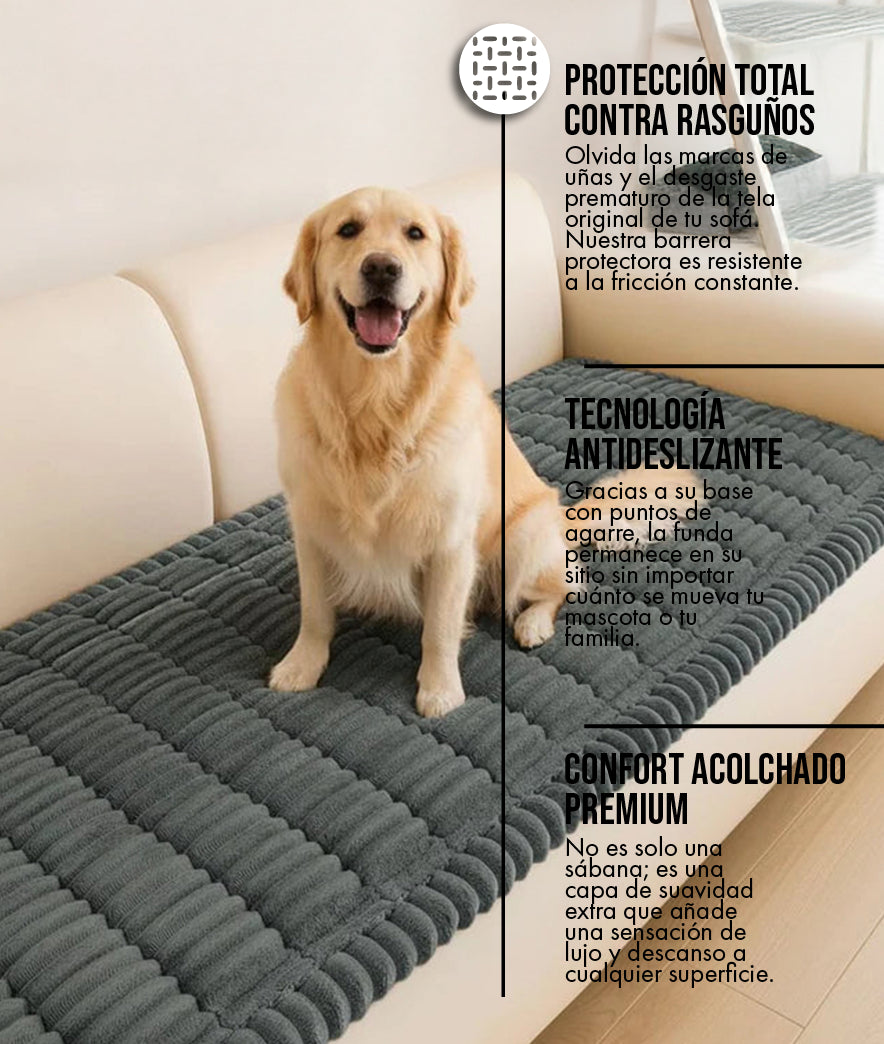 Exactamente. A diferencia de otras fundas que usan elástico, la nuestra cuenta con una base de micro-puntos de silicona que generan fricción con la tela del sofá, manteniéndola firme incluso en hogares con mascotas muy activas.