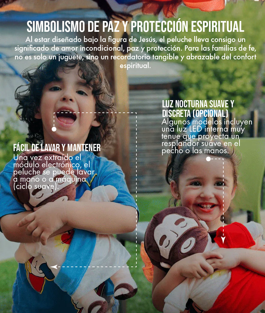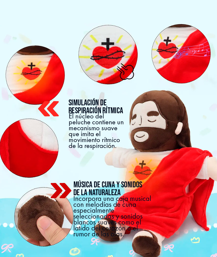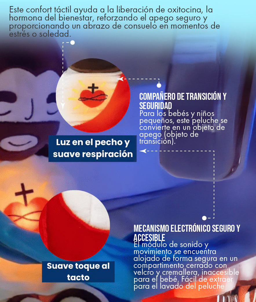 La hora de dormir no tiene por qué ser una batalla. El Jesús de Peluche introduce un elemento de calma predecible y rítmica que el bebé asocia instantáneamente con el descanso. Olvídese del estrés de la noche y dé la bienvenida a una rutina suave y llena de paz.