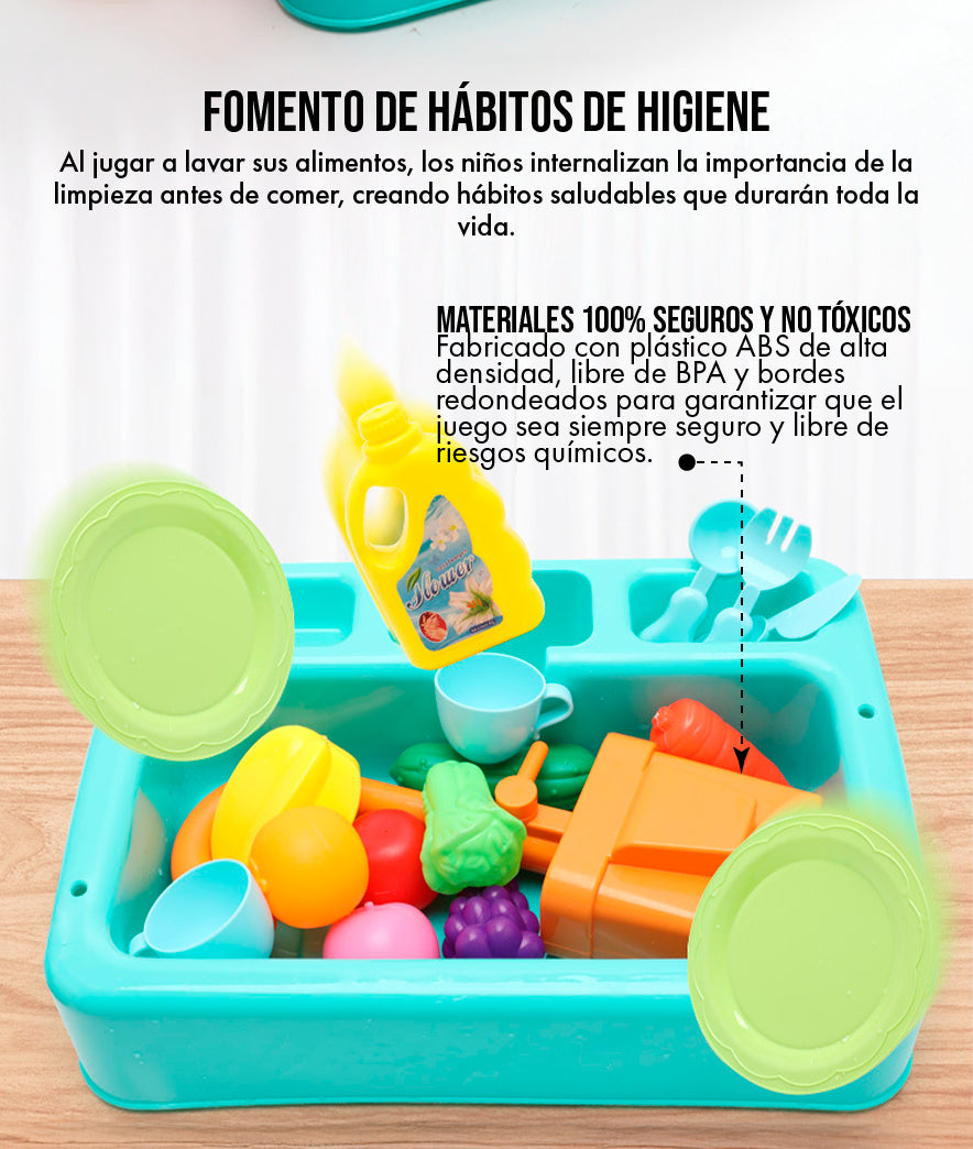 Nuestro lavavajillas no es solo un juguete, es una lección de vida sobre la responsabilidad y el cuidado del hogar que se imparte con alegría y risas.