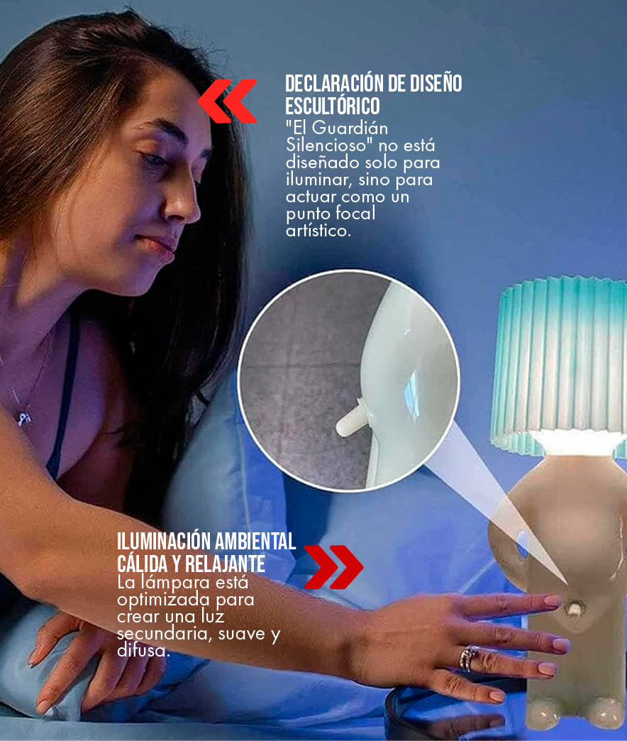 DE LOS DECORADORES PROFESIONALES RECOMIENDAN PIEZAS ESCULTÓRICAS PARA CREAR PUNTOS FOCALES EN ESPACIOS MODERNOS. La lámpara 'El Guardián Silencioso' se alinea con esta estrategia, proporcionando una silueta y un contraste de color que naturalmente atraen la mirada y anclan la composición decorativa de una mesa. Es la herramienta secreta para lograr un diseño de revista.