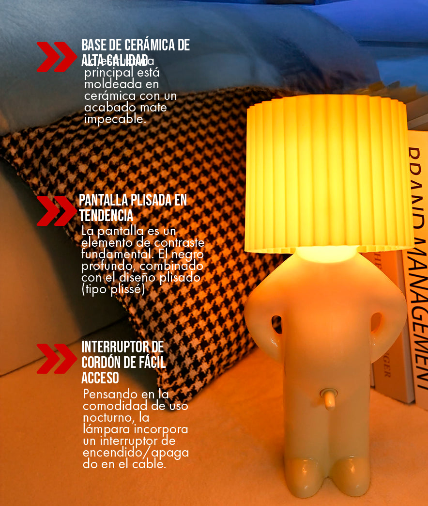 ¡SUMÉRGETE EN UN HALO DE CALIDEZ Y TRANQUILIDAD! Su luz ambiental, filtrada por la pantalla plisada, crea un refugio visual. Es la iluminación perfecta para el ritual antes de dormir: leer, meditar o simplemente disfrutar del silencio. El confort no es solo físico, también es lumínico.