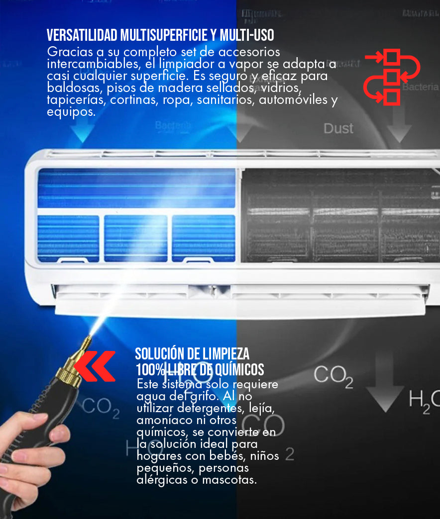 ¡Respira aire puro, vive seguro! Elimina el miedo a los químicos agresivos. El vapor te da la tranquilidad de que tus pisos y juguetes están 99.9% libres de gérmenes sin dejar ningún residuo tóxico. Protege a tus hijos y mascotas de forma natural.