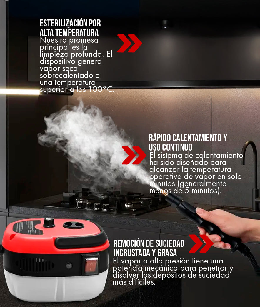Vapor de Agua (100°C+), Disuelve grasa y suciedad |