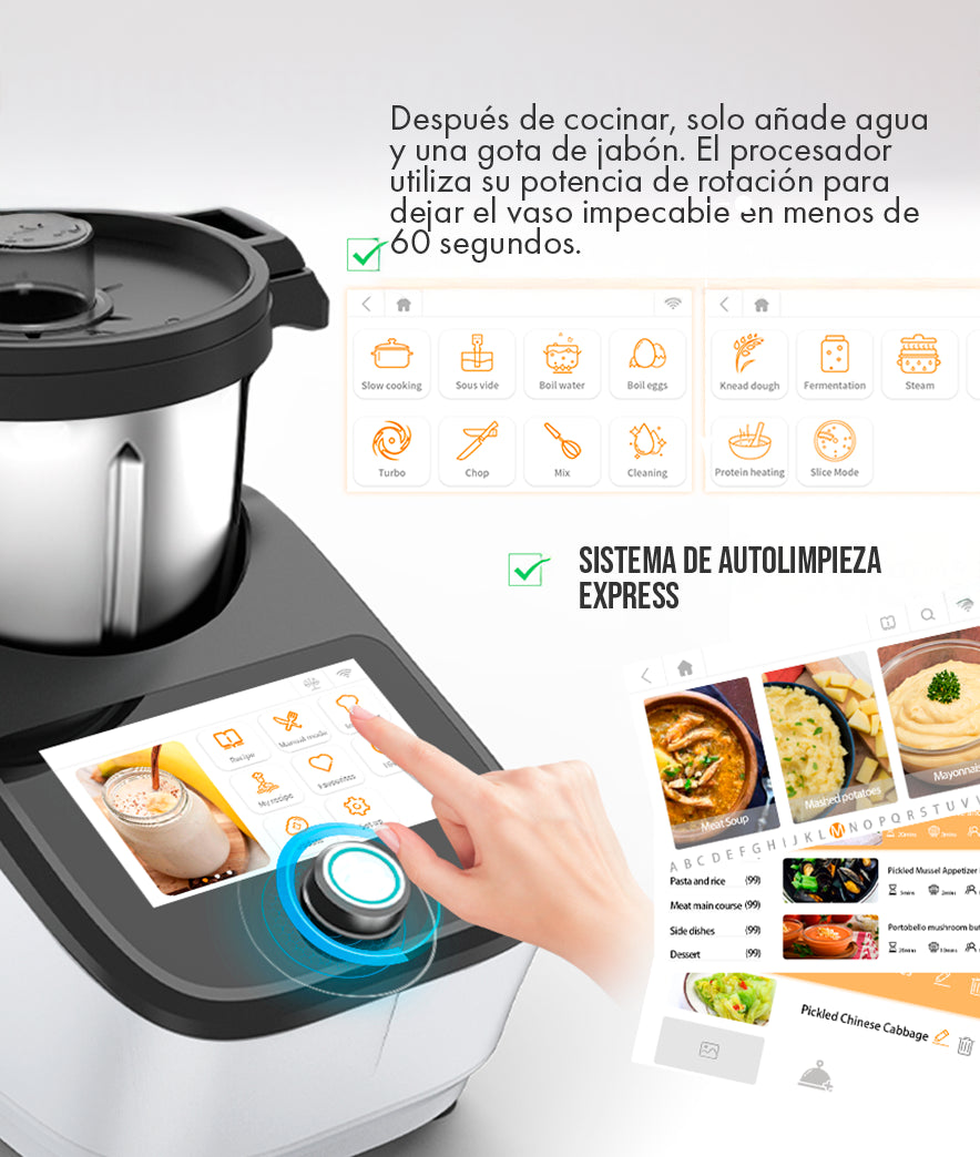 Absolutamente no. La interfaz ha sido diseñada para ser tan intuitiva como un teléfono inteligente. Cada paso se explica con iconos claros y texto sencillo. Si sabes tocar una pantalla, sabes usar el Smart Chef Pro. Además, incluimos un tutorial de inicio rápido para que en 5 minutos estés preparando tu primera receta.