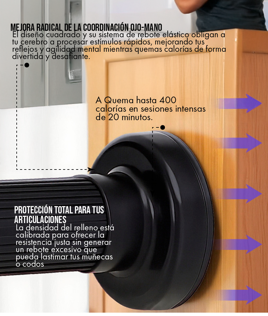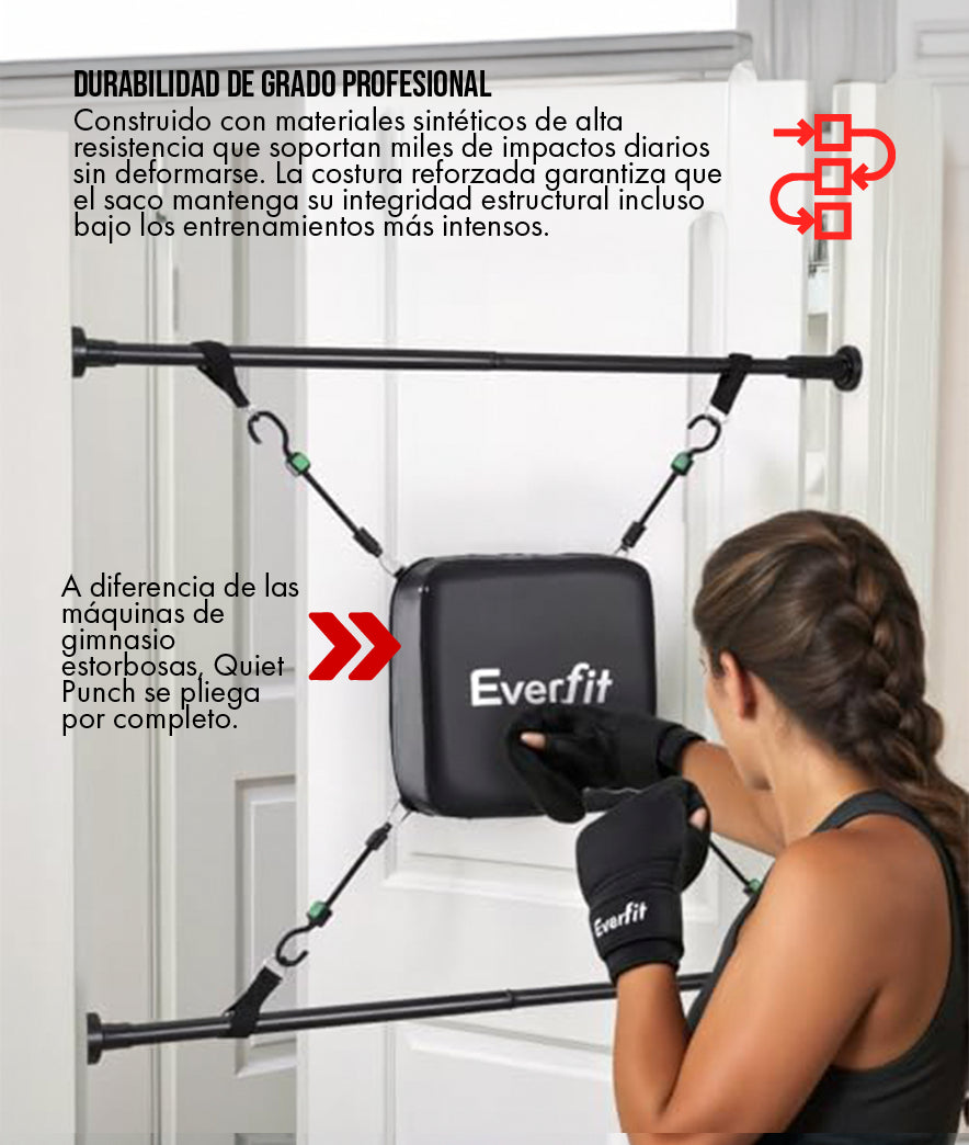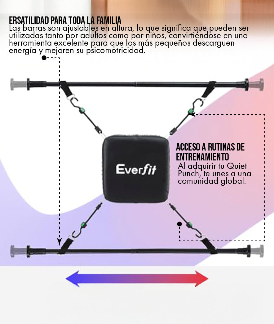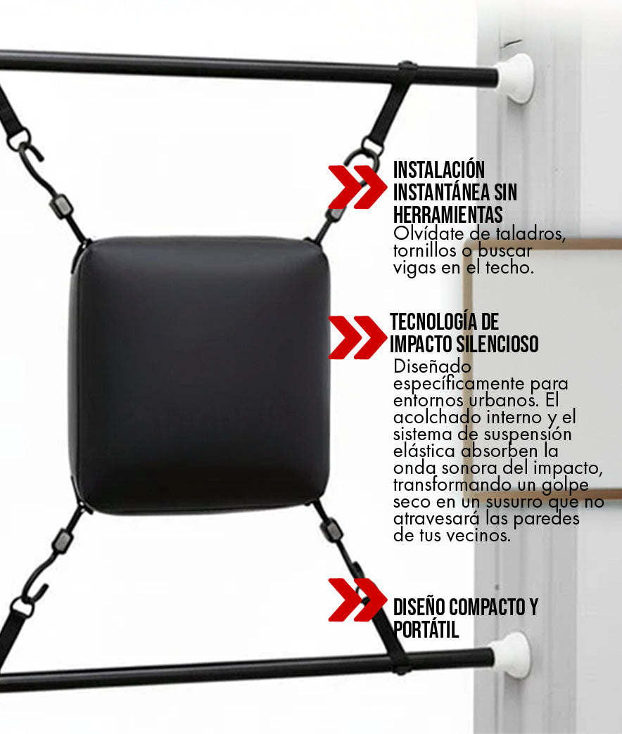 No, en absoluto. Las barras de Quiet Punch están diseñadas con protectores de goma de alta densidad en los extremos que distribuyen la presión de manera uniforme y evitan cualquier tipo de fricción directa con la madera o el metal del marco. El sistema utiliza tensión, no fricción abrasiva, por lo que tu puerta permanecerá impecable incluso después de meses de entrenamiento intenso.