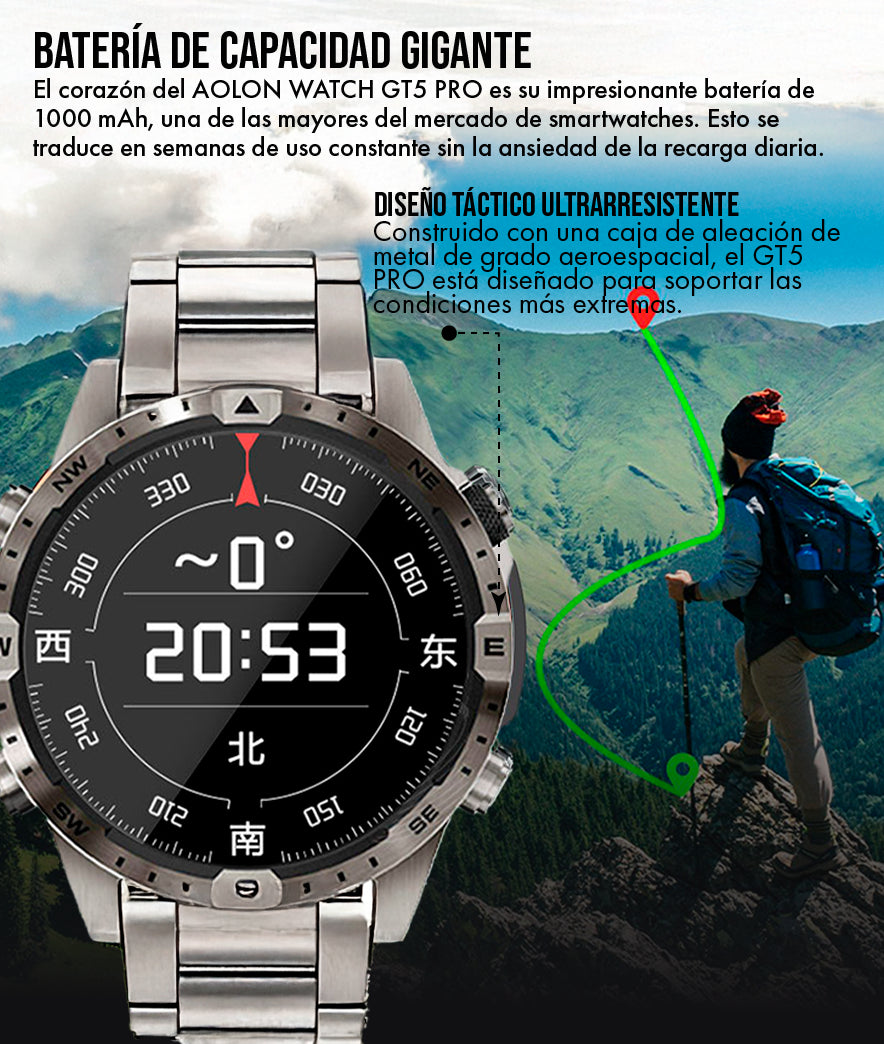 El AOLON WATCH GT5 PRO está diseñado para acompañarlo hasta el final, sin importar el desafío. Su batería de 1000 mAh no es solo una especificación; es la promesa de libertad, la certeza de que su reloj estará operativo cuando más lo necesite, permitiéndole enfocarse en superar sus límites en lugar de buscar un enchufe.