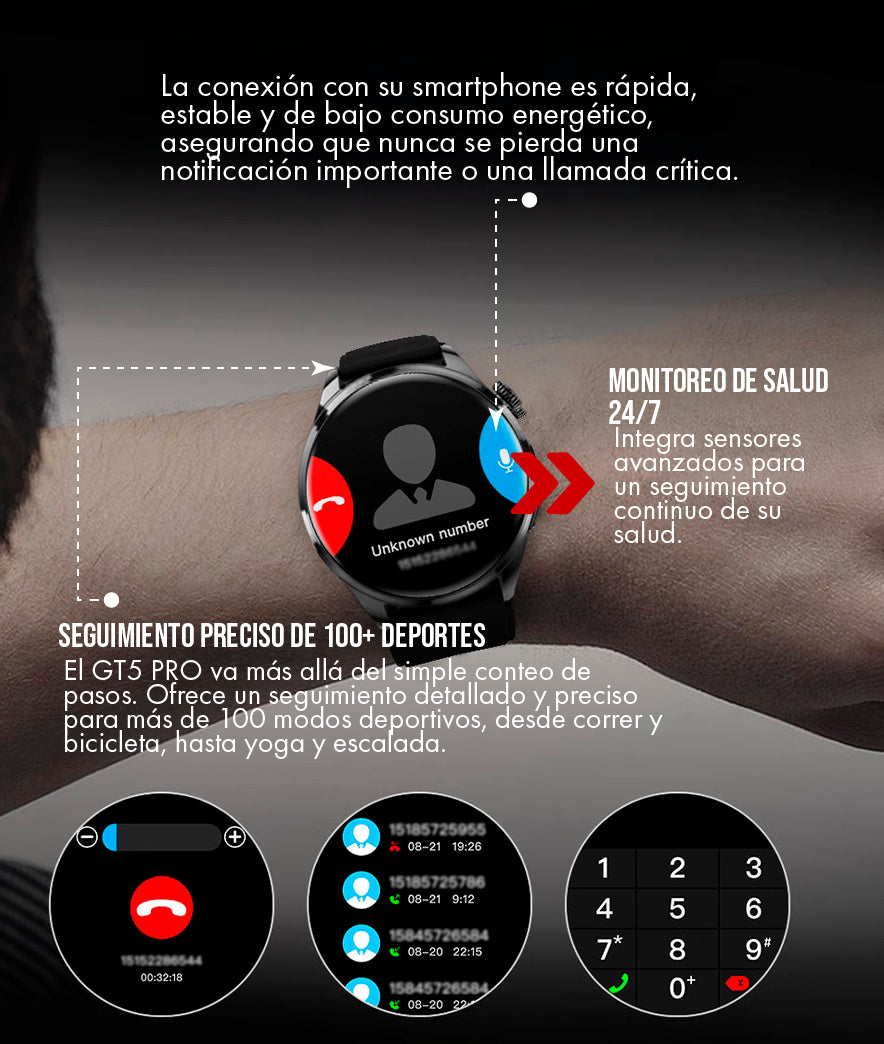 ¡LLEVE EL PODER EN SU MUÑECA! El diseño robusto y audaz del GT5 PRO, con su correa de eslabones de metal y bisel táctico, no solo es duradero, sino que proyecta una imagen de autoridad y determinación. Es la pieza de tecnología que complementa a la persona que toma el control.