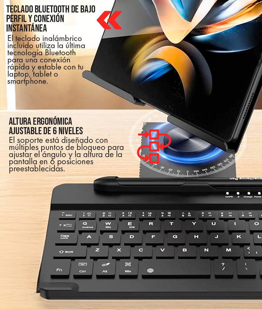 Soporte Plegable y Teclado Ultra-Delgado (Perfecto para viajes/mochila) |